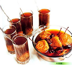 原料:山东平邑天宝山黄香梨、浙江温州冰糖、四川峨嵋山川贝母、熟梨原汁老汤、南国红豆、曲阜大枣、桂花酱、香白芷、香料等。